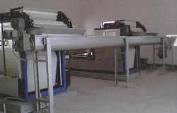 机械压滤设备是污泥深度脱水系统的核心设备,机架采用特种材质的钢结构,满足了压滤工况的需要。污泥机械压滤设备主要由固定滤板、活动滤板、横梁、过滤介质、压紧装置、集液槽等组成。滤板采用耐压材料,使用时间长,故障率低。